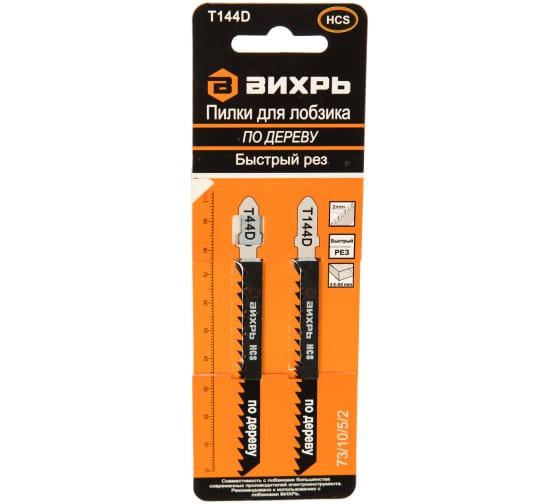 Пилка для лобзика Т144D по дереву быстрый рез 100х75мм (блист.2шт) Вихрь 73/10/5/2