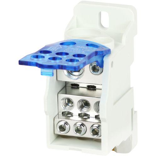 Распределительные блоки РБД на DIN-рейку ЭРА предназначены для распределения электроэнергии от проводника большего сечения на несколько проводников меньшего сечения. Изделие представляет собой клеммный винтовой зажим из луженой латуни в компактном корпусе из негорючего полиамида 6.6. Крепится на монтажную панель или на DIN-рейку с помощью универсального крепления. Применяется для создания упорядоченных систем распределения в силовых шкафах, квартирных распределительных щитах и для организации главной заземляющей шины. Применение распределительных блоков РБД на DIN-рейку позволяет: - создать упорядоченную систему распределения для нулевых, фазных или заземляющих проводников, входящие и отходящие, - сократить количество проводников в щитке, что упрощает его обслуживание, - сэкономить пространство и без особых усилий размещать новые элементы, - обеспечить стабильное и долговечное соединение. Особенности конструкции изделия: - Цельная токоведущая шина изготовлена из луженой латуни с высоким содержанием меди, что гарантирует хорошую электропроводность и низкий нагрев. - Монолитный ступенчатый блок уменьшает переходное сопротивление. - Корпус не поддерживает горение, т.к. выполнен из полиамида с добавлением антипиренов - Безопасная установка и эксплуатация обеспечивается за счет прозрачной крышки, которая защищает от случайных прикосновений и облегчает визуальный контроль соединений. - Удобство монтажа за счет усовершенствованной конструкции универсального крепления с возможностью установки на DIN-рейку 35 мм и монтажную панель. - Болтовой зажим с шестигранной головкой обеспечивают надежное крепление и контакт проводников, а скругленная контактная часть резьбы предотвращают срез проводника при затяжке. - Быстрота монтажа обеспечивается за счет нанесенной на переднюю крышку специальной маркировки размеров и соответствующего количества проводников для подключения.
