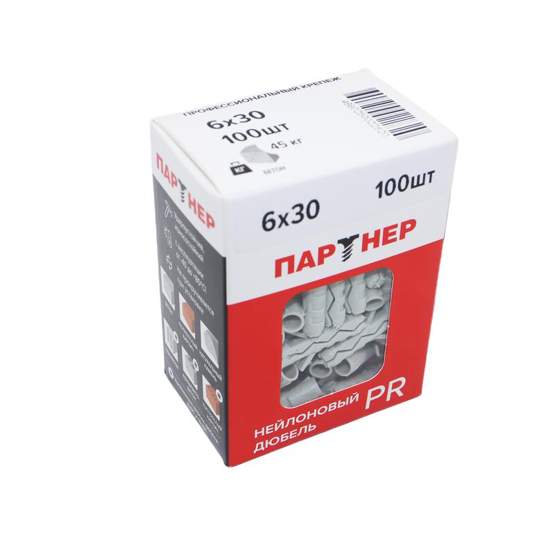 Дюбель распорный нейлон PR 6х30 контейнер (уп.800шт) Партнер 43694