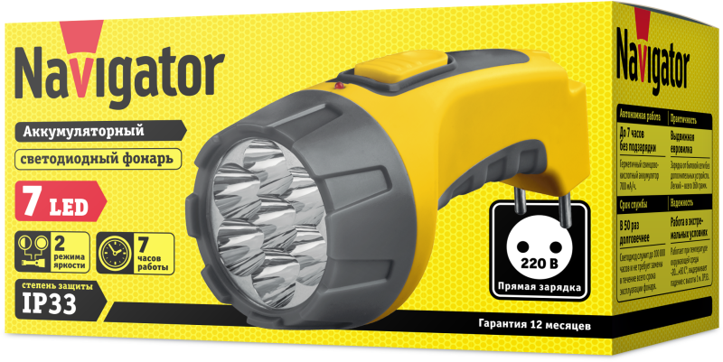 Фонарь аккумуляторный 94 952 NPT-CP04-ACCU 7LED аккум. 4В 700мА.ч прямое ЗУ пластик. NAVIGATOR 94952