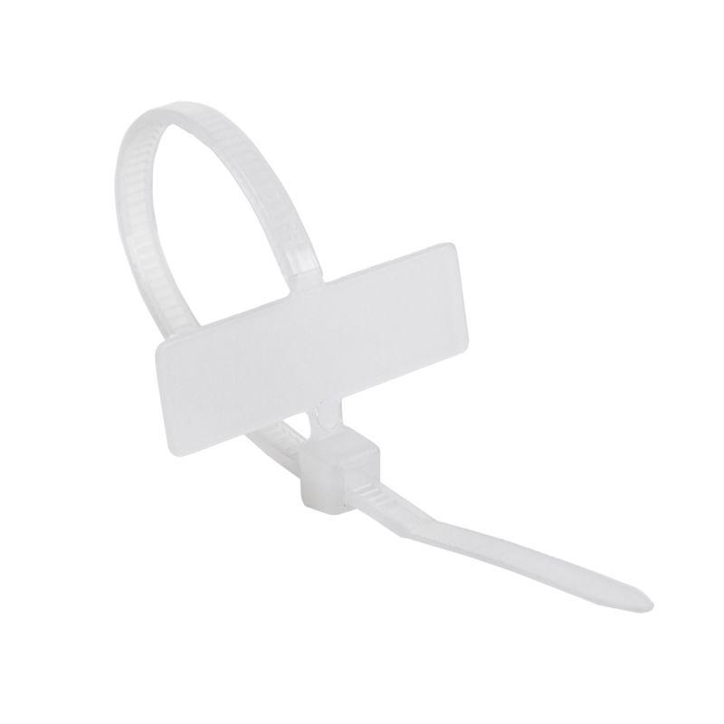 Хомут нейлоновый под маркер 100х2,5 мм предназначен для крепления или обвязки в жгут кабелей и проводов, гибких гофротруб, а также закрепления других объектов на несущей поверхности. Такая стяжка используется при проведении электромонтажных работ, монтаже структурированных кабельных систем, для бытовых нужд и так далее. Изделие представляет собой гибкую полоску из полиамида-6,6 высокой прочности с замком на конце. Материал имеет высокую твердость и механическую прочность, а также отличается высокими электроизоляционными свойствами. Простой и удобный монтаж осуществляется вручную или с помощью монтажного инструмента для стяжек REXANT арт.12-4521 или 12-4541. Не рекомендуется перегибать бандаж при затяжке. Главным достоинством хомута под маркер является имеющаяся у него площадка для маркировки пучков кабелей (25х8 мм), расположенная сразу перед замком.