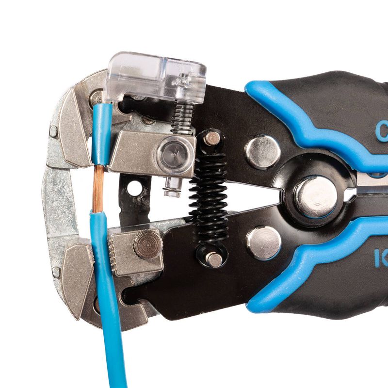 • 4 в 1: • снятие изоляции с проводов 0.05–10 мм2 • резка проводов сечением до 6 мм2 • снятие оболочки с плоских проводов ВВГ-П, ПУНП • опрессовка наконечников 0.5–6.0 мм2 • В стандартном диапазоне 0.2–6 мм2: автоматическая настройка на нужный размер и толщину изоляции проводов • В микродиапазоне проводов от 0.05 мм2 и для сечения 10 мм2 используется винт микронастройки • Снятие изоляции с моножильных и многопроволочных жил без повреждения проводника • Усиленные прижимные губки с шириной захвата 13 мм • Окно для сброса обрезков изоляции, благодаря которому снятая изоляция не застревает в механизме • Одновременная зачистка нескольких проводов за одно движение • Функция частичного снятия изоляции. Надрез и смещение • Модуль резки «CutPro» обеспечивает высокое качество реза без особых усилий • Снятие изоляции с середины провода • Встроенные возвратные пружины с увеличенным ресурсом работы • Две запасные пружины в комплекте • Типы опрессуемых наконечников: • изолированные наконечники с красной, синей и желтой манжетами • неизолированные наконечники • автоклеммы под двойной обжим • Металлическая отбортовка защитной крышки механизма • Регулятор длины снятия изоляции с автоматической фиксацией положения • Нескользящие двухкомпонентные рукоятки со вставками из мягкой термопластрезины • Вес: 345 г • Длина: 210 мм