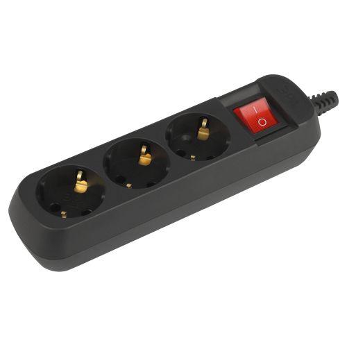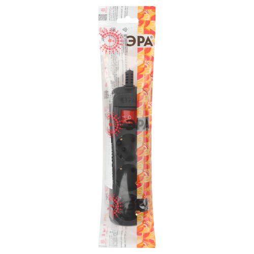 Колодка ЭРА KX-3es-B на 3 розетки, с заземлением, с выключателем, черная. Максимальная мощность - 16 А/3500 Вт. Для кабеля до 3х1,5мм2