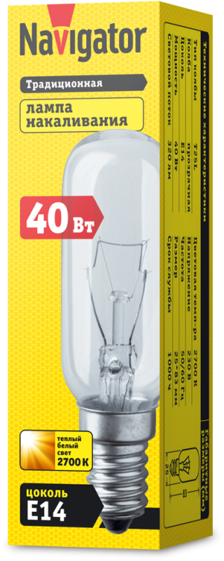 Лампа накаливания 61 206 NI-T25L-40-230-E14-CL Navigator 61206