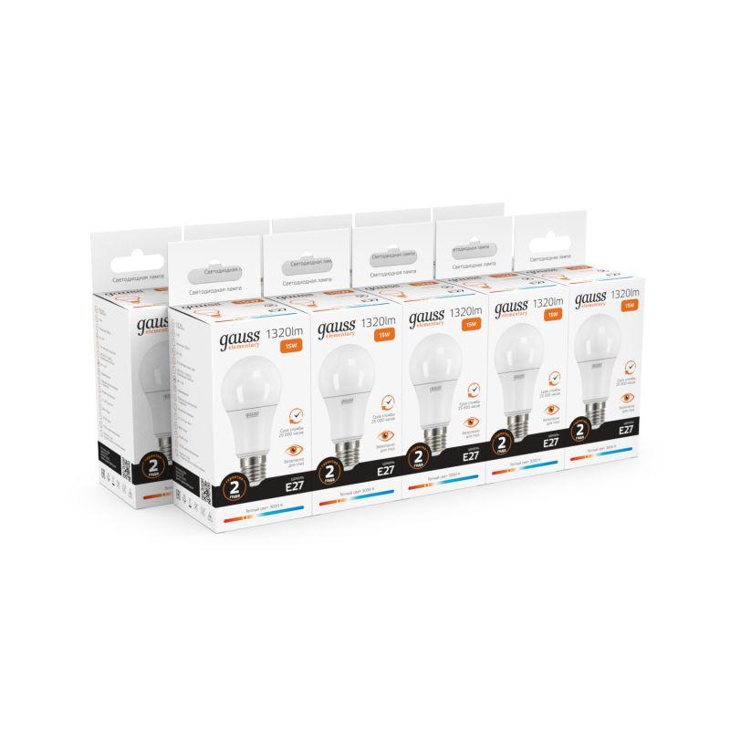 Лампа светодиодная Elementary 15Вт A60 грушевидная 3000К тепл. бел. E27 1320лм GAUSS 23215