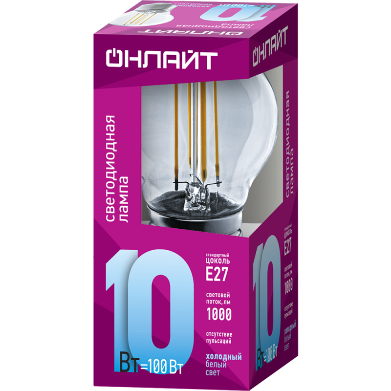 Лампа светодиодная филаментная 80 883 OLL-F-G45-10-230-4K-E27 10Вт шар прозрачная 4000К нейтр. бел. E27 1000лм 220-240В ОНЛАЙТ 80883