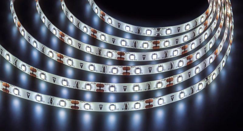 Лента светодиодная 71 702 NLS-3528CW60-4.8-IP65-12V-Pro R5 (уп.5м) Navigator 4670004717028 – средство освещения. Представляет собой полосу длиной 5 м, со светодиодами в количестве 60 шт./1 м, с длиной секции 50 мм. Самоклеющаяся, без адаптера подключения. Дает белый свет. Цветовая температура 6000 К. Применяется в целях декоративного освещения и как способ оформления светодизайна помещений, витрин, фасадов, рекламных щитов и проч.