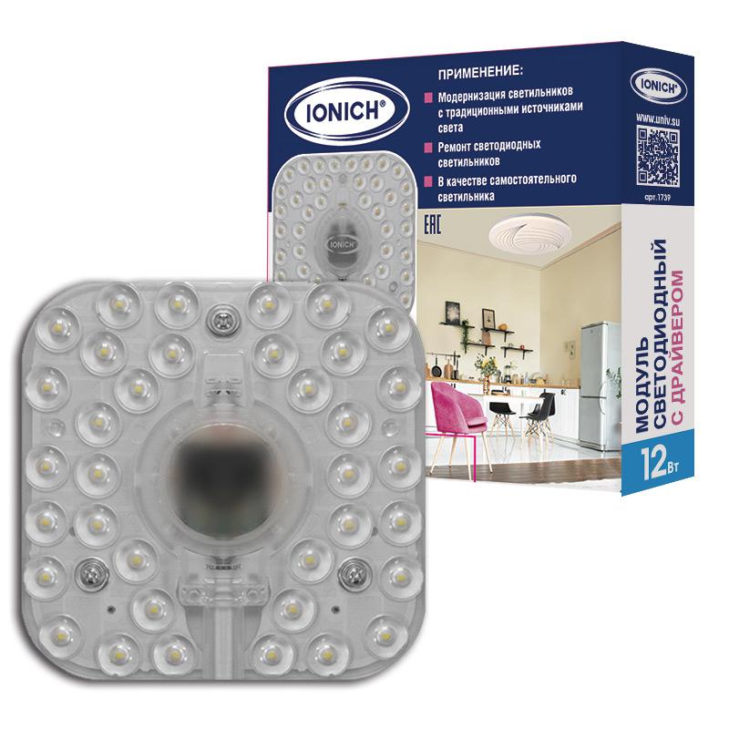 Модуль светодиодный 12Вт 6500К IP20 960лм 230В 98х98мм для декоративных светильников IONICH 1739