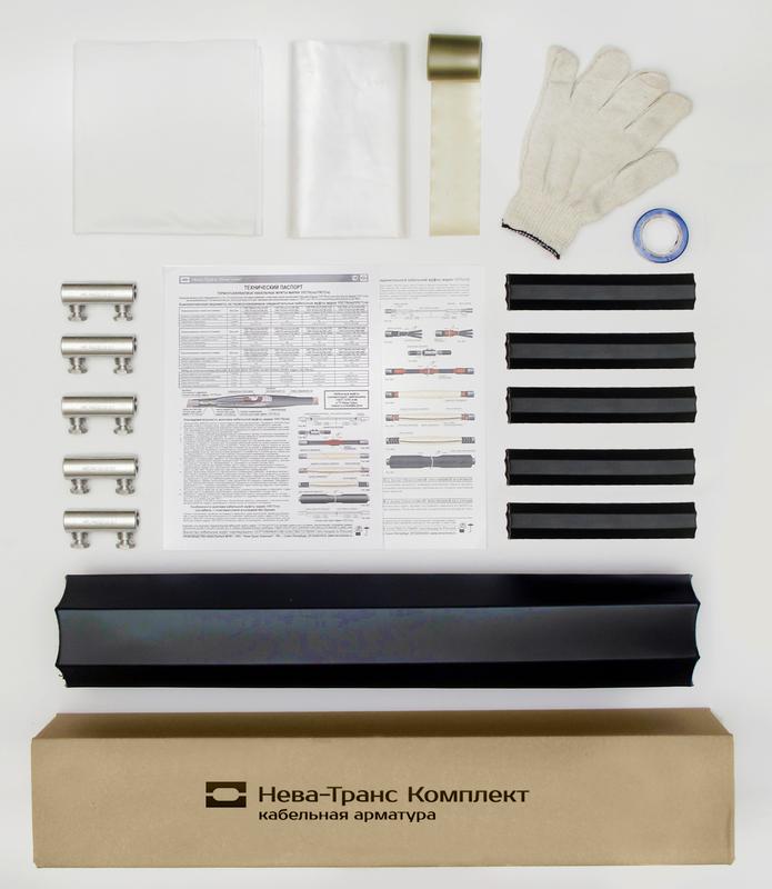 МУФТА СОЕДИНИТЕЛЬНАЯ ТЕРМОУСАЖИВАЕМАЯ МАРКИ 1ПСТ(тк)нг-LS-5х(35-50) С СОЕДИНИТЕЛЯМИ БОЛТОВЫМИ предназначена для соединения 5-ти жильных силовых кабелей сечением 35, 50 кв.мм с пластмассовой изоляцией без брони на напряжение до 1 кВ включительно. Удовлетворяет самым строгим требованиям пожарной безопасности. Детали, входящие в комплект кабельной муфты, изготовлены на основе материалов, не распространяющих горение (нг) с пониженным дымо- и газовыделением (LS). Устанавливается непосредственно в грунте, а также в тоннелях, каналах, коллекторах и других кабельных сооружениях без ограничения по уровню прокладки. Эксплуатируется при температуре окружающей среды от -50град.С до +50град.С и относительной влажности до 98%. Соответствует требованиям ГОСТ 13781.0-86 и ТУ Нева-Транс 3599-012-31930690-2016. Прошла необходимый комплекс независимых испытаний, на основании которых выданы сертификаты соответствия требованиям пожарной безопасности и Госстандарта России. Монтируется на двух концах соединяемых кабелей методом термоусаживания основных комплектующих с помощью горелки или высокотемпературного фена. Имеет наружный толстостенный термоусаживаемый кожух с нанесенным на него клеевым слоем, обеспечивающий полноценную защиту и герметичность кабельной муфты. Сочетает в себе высокую эксплуатационную надежность и экологическую безопасность.