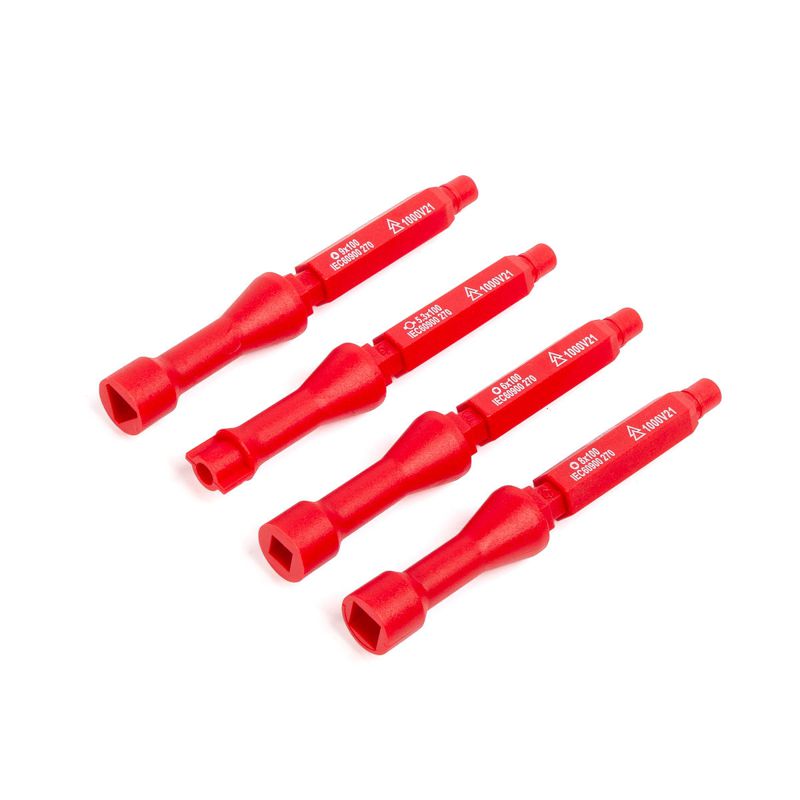 • Для работы под напряжением до 1000 В • Материал стержня: хром-молибденовая сталь • Вороненые намагниченные наконечники • Материал изоляции стержня: полипропилен • Каждая бита имеет маркировку типоразмера • Двухкомпонентная рукоятка с мягкими вставками из термопластрезины • Надежный поворотный механизм фиксации рукоятки • Упаковка: прочная раскладывающаяся сумка с широкой застежкой-липучкой и петлей под ремень для ношения на поясе • Вес набора: 500 г