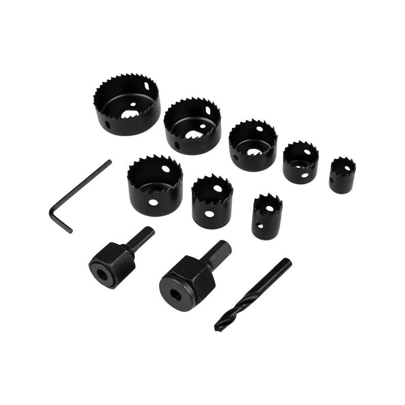 Набор коронок популярных диаметров предназначен для вырезания круглых отверстий в древесине, ДСП, ДВП, пластике. Позволяет сделать отверстия для установки розеток, выключателей, светильников, также будет полезен при установке труб. Набор отличается продуманной комплектацией: помимо коронок в него выходят держатель для коронок диаметром 19-28 мм и держатель с центрирующим сверлом для коронок диаметром 32-64 мм. В набор также входит шестигранный ключ, упрощающий установку сверла в державку. Предусмотрена упаковка в виде кейса, удобная для хранения коронок. Набор состоит из коронок диаметром 19-22-28-32-38-44-54-64 мм (8 шт.), шестигранного ключа (1 шт.), держателя для коронок диаметром 19-28 мм (1 шт.), держателя с центрирующим сверлом для коронок диаметром 32-64 мм (1 шт.). Применяется совместно с дрелью, шуруповертом или сверлильным станком.