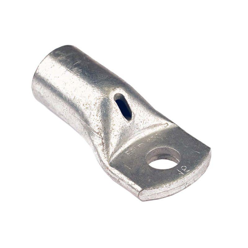 Неизолированный наконечник (ТМЛ) предназначен для оконцевания предварительно зачищенных от изоляции медных проводов и их присоединения к медным клеммам, шинам, зажимам. Материал контактной части – медь М1. Луженое покрытие внешних и внутренних поверхностей с использованием висмута защищает от коррозии и увеличивает проводимость защитного слоя. Особенностями наконечника являются смотровое отверстие для контроля качества жилы и наконечника, равномерное блестящее покрытие, номинальное напряжение до 30 кВ. Наконечник используется для крепления контактной площадки с помощью метиза М8. Сечение проводника – 25 мм2. Номинальный ток – 140 А.