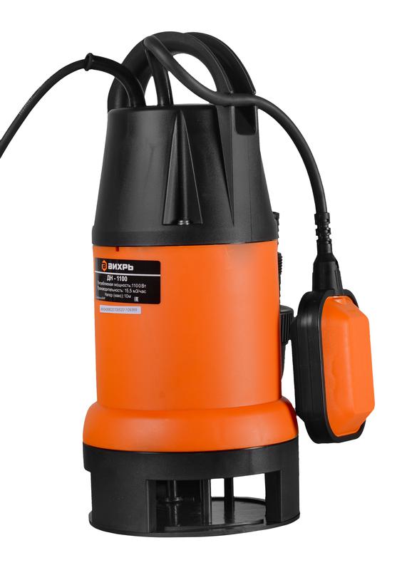 МОЩНОСТЬ, ВТ - 1100 ТИП - Центробежный, погружной, вертикальный НАПРЯЖЕНИЕ СЕТИ, В - 220 ЧАСТОТА, ГЦ - 50 МАКС. ТЕМПЕРАТУРА ВОДЫ, °C - 35 МАКС. ПРОИЗВОДИТЕЛЬНОСТЬ, Л/Ч - 15500 ГАБАРИТЫ, СМ - 40 х 20 х 10 ВЕС В УПАКОВКЕ - 6 кг ПИТАНИЕ - От электросети КОМПЛЕКТАЦИЯ - Дренажный насос – 1 шт; Пластиковый штуцер – 1 шт; Паспорт – 1 шт; Упаковка – 1 шт. МАТЕРИАЛ - Пластик ДИАМЕТР ВЫХОДНОГО ОТВЕРСТИЯ, ДЮЙМ - 1.5 ГЛУБИНА ПОГРУЖЕНИЯ, М - 8 ВЫСОТА НАПОРА, М - 10 КАЧЕСТВО ВОДЫ - Грязная ПОПЛАВКОВЫЙ ВЫКЛЮЧАТЕЛЬ - Внешний Дренажный насос ВИХРЬ ДН-1100 предназначен для откачивания и отведении воды и стоков с инородными примесями из различных водоёмов и резервуаров (котлованов, шахт, сливных ям и т.д). С их помощью можно выкачивать воду в случае подтопления жилых помещений и подвалов. Электродвигатель насоса асинхронный, однофазный с короткозамкнутым ротором. Максимальная глубина всасывания составляет не более 8 метров. Температура перекачиваемой жидкости должна быть от +1°C до +35°C. Не допускается работа дренажного насоса "в сухую" (без воды), попадание воздуха во всасывающую магистраль. От перегрузки насос защищает термопротектор, отключение происходит автоматически. При временной установке рекомендуются гибкие трубы, для постоянной установки рекомендуются жесткие трубы. Отличие модели ДН-1100 от ДН-1100Н в том, что корпус у ДН-1100 изготовлен из прочного пластика. При использовании данной модели допускается большой уровень загрязнённости воды, наибольший размер твёрдых частиц не должен превышать 35 мм. Насос оснащён внешним поплавковым выключателем, который отрегулирован на определённый уровень включения и отключения насоса. Необходимо удостовериться, что при минимальном уровне воды выключатель отключает насос. Убедитесь, что объем воды в пределах maх и min поля регулирования по отношению к количеству перекачиваемой воды и не требует от насоса более 20 включений в час.