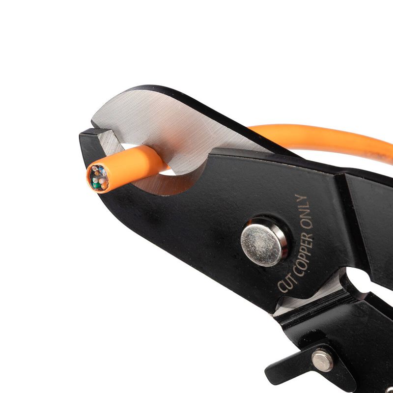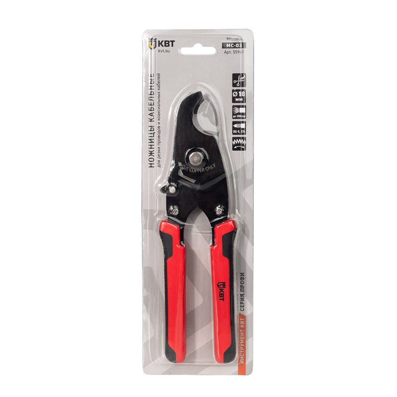 • Диапазон резки: • провода ? до 18 мм • телефонные кабели до 100 пар • коаксиальные кабели RG-9, RG-174 • Лезвия серповидной формы из закаленной стали • Двухкомпонентные нескользящие рукоятки • Блокиратор рукояток • Возвратная пружина • Вес: 280 г • Длина: 215 мм