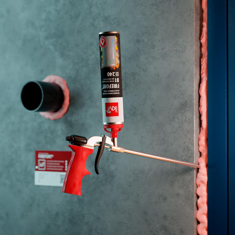 Профессиональная огнестойкая однокомпонентная пена В1 от торговой марки "СИСТЕМА КМ" отвечает стандартам DIN 4102-1/В-1 со степенью огнестойкости, составляющей 240 минут. Выступает в роли монтажного материала и наполнителя. Затвердевает под воздействием влажности воздуха. Обладает огнестойкостью (класс В1) и свойством самозатухания. Используется в местах с повышенными требованиями к огнестойкости строительных материалов. Применяется в качестве вспомогательного средства для монтажа огнестойких кабельных проходок. Не стекает при нанесении. Рекомендуется для изоляции электросоединений, трубопроводов, заполнения различных строительных пустот, щелей и трещин. Однородная структура состава, плотностью 25-30 кг/м3, обеспечивает отличную адгезию к рабочей поверхности. Максимально эффективное сцепление достигается при температуре применения от 0 до 30°С. Пена устойчива ко всем погодным условиям, пару и влаге, а также морскому климату. Термостойкость составляет от -40°С до +100°С. Готова к использованию со стандартным пистолетом для пены.