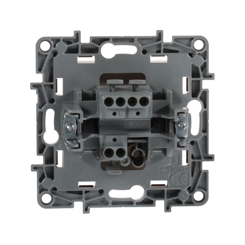 Переключатель одноклавишный ETIKA для скрытого монтажа, номинальный ток 10 А. Предназначен для управления нагрузкой с одного или с двух мест.