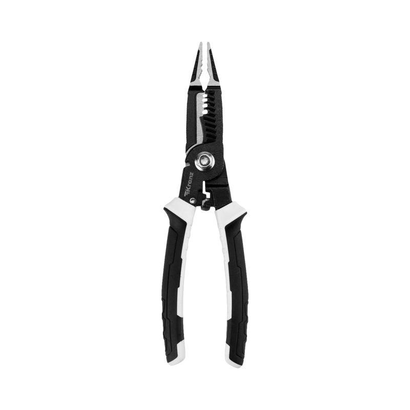 Многофункциональные универсальные плоскогубцы – это инструмент на все случаи жизни, включающий в себя: плоскогубцы, тонкогубцы, бокорезы, инструмент для зачистки кабеля, резак для проводов, напильник, инструмент для обжима клемм. Используются для ремонта автомобилей, мотоциклов, механизмов и т.д. Применяются для монтажных работ, а также в быту. Плоскогубцы изготовлены из профессиональной хромованадиевой стали (60Cr-V), максимальная твердость – 60-62HRC. Оснащены износостойкими двухкомпонентными анатомическими рукоятками, которые не скользят в руках. Тип рукояток – японский. На торцах плоскогубцев расположены насечки, позволяющие использовать инструмент как напильник для тяжелых работ. Плоскогубцы обладают отличной режущей способностью, подходят для резки/зачистки пластика, медных и мягких проводов, а также для обжима изолированных и неизолированных наконечников. Также подходят для зачистки кабеля от 1,27 мм2 до 5,30 мм2.