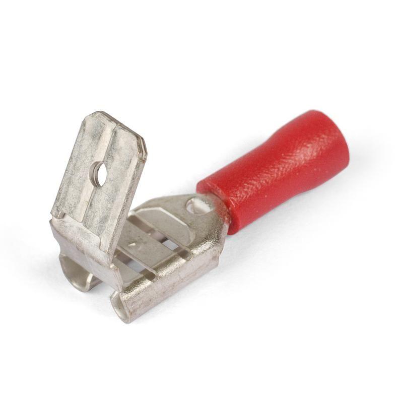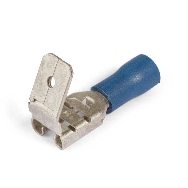 • Предназначены для формирования быстроразъемных соединений многопроволочных медных проводов с дополнительным ответвлением • Материал изоляции: самозатухающий ПВХ.Класс V-0 по UL94 • Термостойкость изоляции: 75 °C • Материал разъема: латунь марки Л63 • Покрытие разъема: электролитическое лужение • Максимальное напряжение: 400 В • Особенности конструкции: • два в одном: розетка «мама» и вилка «папа» в одной клемме • поперечные засечки на внутренней поверхности трубной части разъемов увеличивают механическую прочность соединения с жилой • клеммы имеют конструктивные фиксаторы замкового типа для прочного механического соединения разъемов «папа-мама» • Размер контакта определяется шириной «В» клеммы РПИ-П • Комплементарны с разъемами РПИ-П и РПИ-М, а также выходами типа «папа» на клеммах электрических устройств • Опрессовка проводника поверх изолирующей манжеты