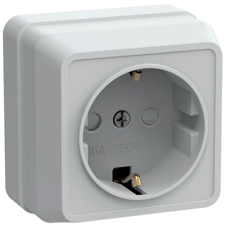 Розетка 1-м ОП Октава РСш20-3-ОБ 16А IP20 с заземл. защ. шторки бел. IEK ERO14-K01-16-DC