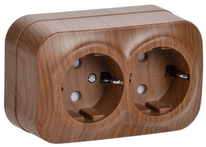 Розетка 2-м ОП GLORY РСш22-3-ХД 16А с заземл. защ. шторки дуб IEK ERH24-K24-16