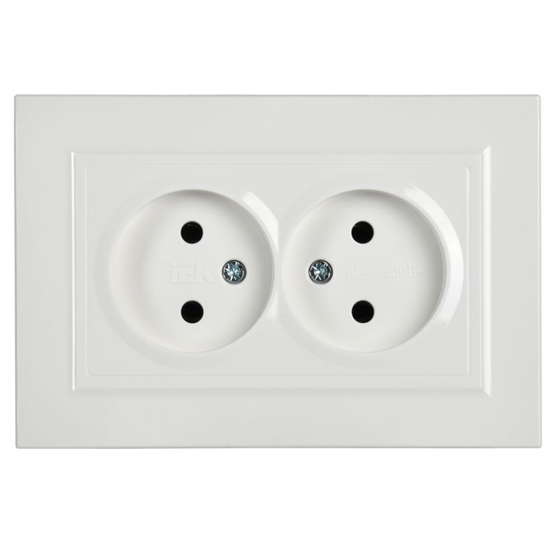 Розетка 2-м СП BRITE РС12-2-БрБ 10А в сборе без заземл. без защ. шторок бел. IEK BR-R20-10-K01-F