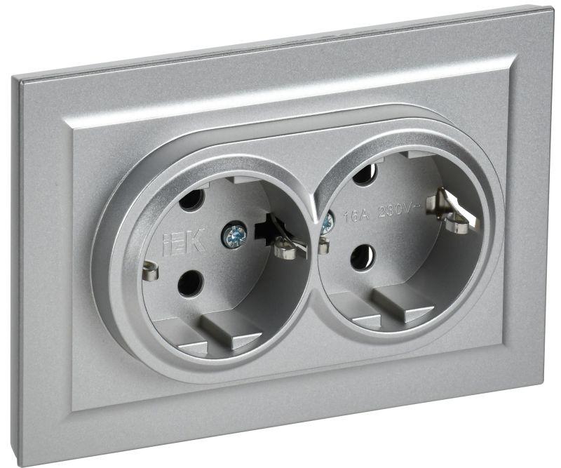 Розетка 2-м СП BRITE РС12-3-БрА 16А в сборе с заземл. без защ. шторок алюм. IEK BR-R21-16-K47-F