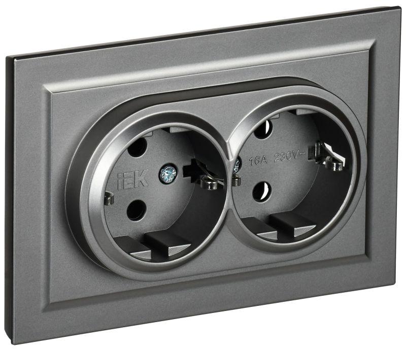 Розетка 2-м СП BRITE РС12-3-БрС 16А в сборе с заземл. без защ. шторок сталь IEK BR-R21-16-K46-F