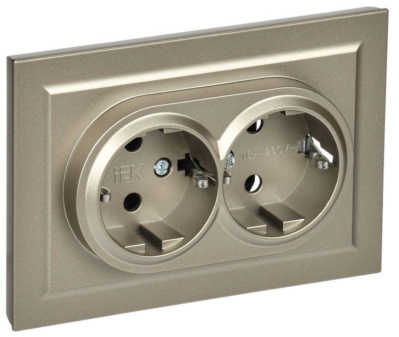 Розетка 2-м СП BRITE РС12-3-БрШ 16А в сборе с заземл. без защ. шторок шампань IEK BR-R21-16-K37-F