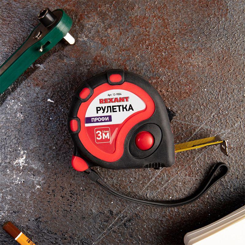 Измерительная рулетка REXANT Профи необходима при проведении измерительных работ в строительстве, хозяйстве, ландшафтных и геодезических исследованиях. Двухкомпонентный прорезиненный корпус, выполненный из ударопрочного пластика, не скользит в руках. Прочное полотно без изломов имеет глянцевое покрытие. Для удобства использования предусмотрены кнопки стопора и фиксации тормоза. Инструмент оснащен удобным зацепом с отверстием посередине, которое позволяет зафиксировать полотно рулетки на шляпке гвоздя или самореза. На корпусе расположена клипса-зажим для фиксации рулетки на ремне, кармане или поясной сумке. Ремешок позволяет надевать инструмент на запястье, чтобы освободить руки для работы.