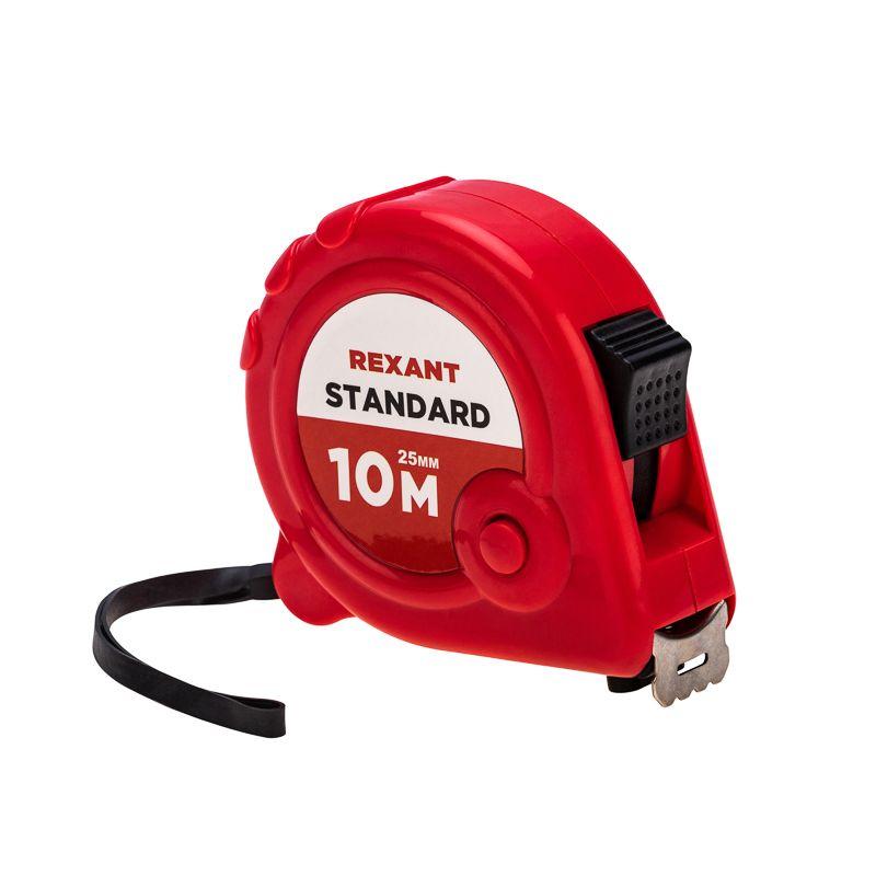 Измерительная рулетка REXANT Стандарт используется при проведении измерительных работ в строительстве, хозяйстве, ландшафтных и геодезических исследованиях. Двухкомпонентный прорезиненный корпус, выполненный из ударопрочного пластика, не скользит в руках. Прочное полотно без изломов имеет глянцевое покрытие. Для удобства использования предусмотрены кнопки стопора и фиксации тормоза. Инструмент оснащен удобным зацепом с отверстием посередине, которое позволяет зафиксировать полотно рулетки на шляпке гвоздя или самореза. На корпусе расположена клипса-зажим для фиксации рулетки на ремне, кармане или поясной сумке. Ремешок позволяет надевать инструмент на запястье, чтобы освободить руки для работы.
