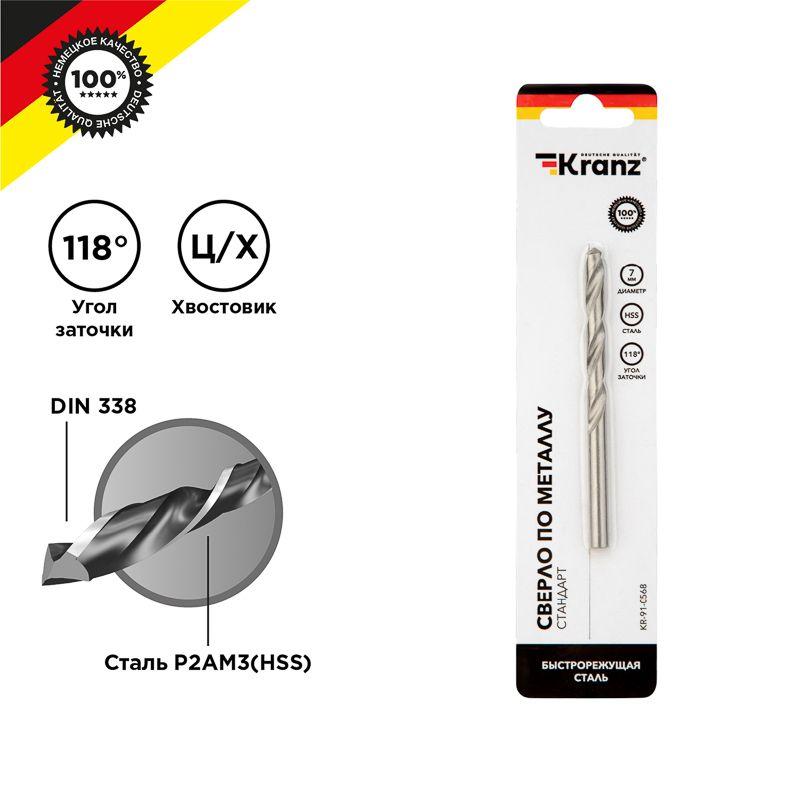 Сверло по металлу 7.0мм HSS DIN 338 (уп.1шт) Kranz KR-91-0568