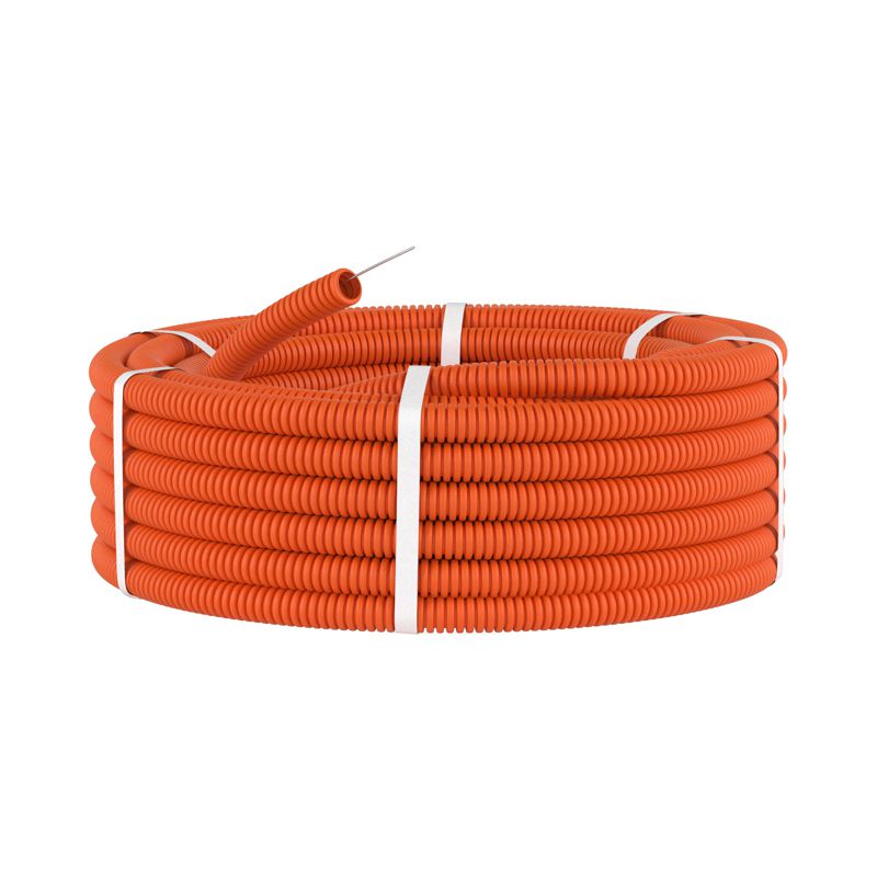 Гибкая гофрированная труба предназначена для прокладки в ней электрических, компьютерных, телевизионных кабелей. Она имеет проволочную протяжку для упрощения прокладки кабеля. Труба такого типа отличается повышенной прочностью и может использоваться в монолитном бетоностроении и для скрытой прокладки в стяжке полов (при этом основание должно быть выполнено из несгораемого материала) или же в штробах стен. Труба обеспечивает степень пыле- и влагозащиты до IP 55 (при использовании специальных аксессуаров), устойчива к старению. Диаметр трубы – 16 мм. Материал – полиэтилен низкого давления (ПНД).Тяжелые гибкие гофрированные трубы могут монтироваться и эксплуатироваться при широком диапазоне температур: - от -40°С до +90°С. Цвет - оранжевый. Длина – 100 метров.