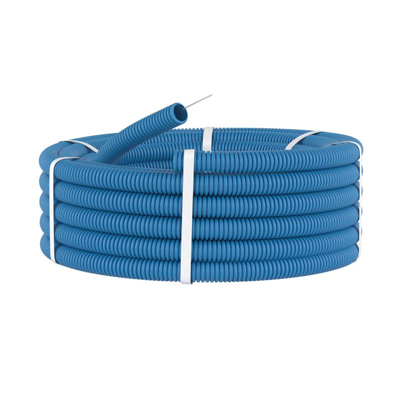 Электротехнические трубы используются для прокладки кабельных коммуникаций в различных условиях - они могут прокладываться под землей и открыто, заливаться в бетон и стяжку пола. Правильно подобранная электротехническая труба надежно защищает кабель от повреждений и негативных воздействий окружающей среды. Электротехнические трубы могут применяться при монолитном строительстве, прокладываться на производственных предприятиях, в коммерческой недвижимости и индивидуальном строительстве. Гофрированные трубы из самозатухающего полипропилена не распространяют горение. Материал устойчив к экстремальным температурным воздействиям, а высокая ударная прочность и эластичность позволяют применять трубы в монолитном бетоностроении. В серии выпускаются легкие, тяжелые и сверхтяжелые трубы, отличающиеся по весу, уровню ударопрочности и устойчивости к нагрузкам. Трубы применяются для прокладки электрических, телефонных, компьютерных кабелей. Специальная протяжка, входящая в комплект, облегчает прокладку кабеля во внутреннем пространстве трубы. Диаметр трубы - 20 мм. Цвет - синий.