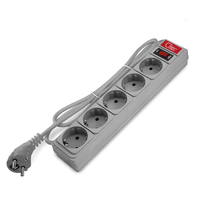Удлинитель с сетевым фильтром 5х1.8м 10А IP21 ПВС 3х0.75 сер. Союз 1341