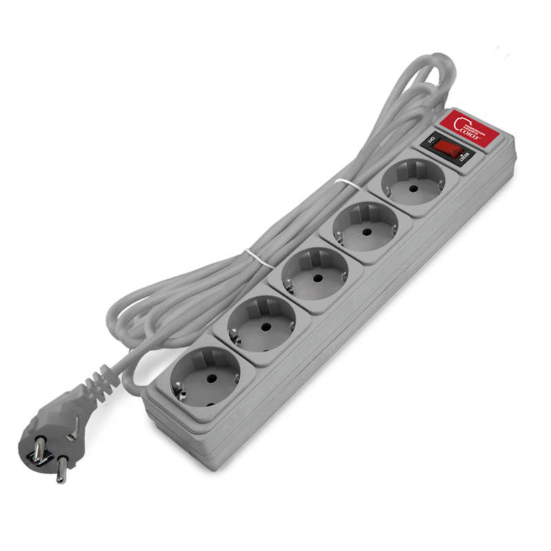 Удлинитель с сетевым фильтром 5х3м 10А IP21 ПВС 3х0.75 сер. Союз 1329