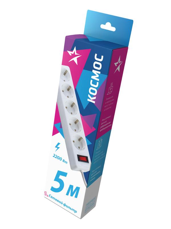 Белый сетевой фильтр 5м на 5 гнезд с двумя защитами для гаджетов и дорогой техники – варистор для защиты от «плохого» тока и терморазмыкатель для защиты от перегрузки и замыкания в сети. Сзади специальное крепление – можно повесить на стену. Корпус из негорючего полипропилена, 100% медный кабель ПВС 3х0,75мм (с заземлением). Контактная группа из латуни не деформируется со временем. Максимальная мощность подключения 2200Вт – хватит для нескольких устройств одновременно. 5 лет гарантии