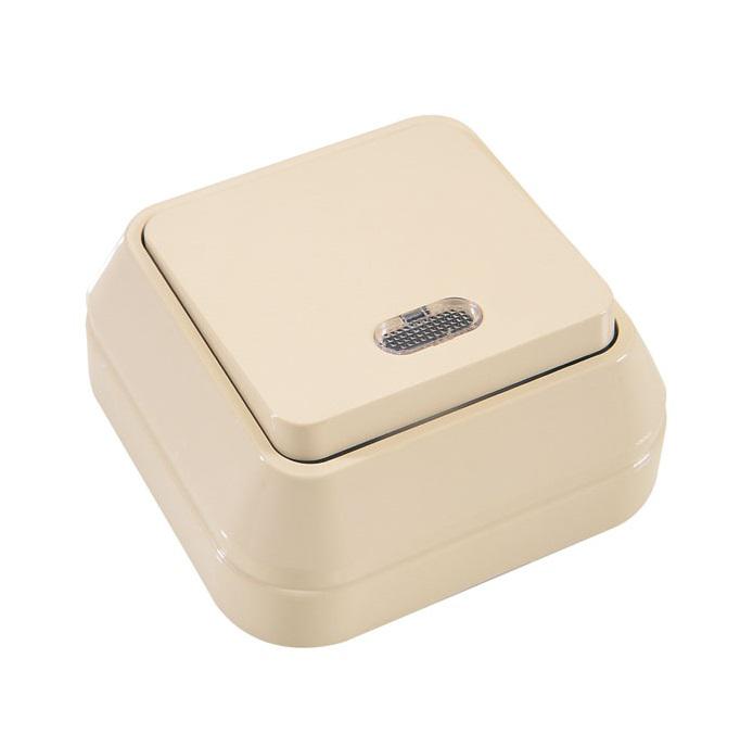 Выключатель 1-кл. ОП 10А IP20 с подсветкой крем. Makel 45221