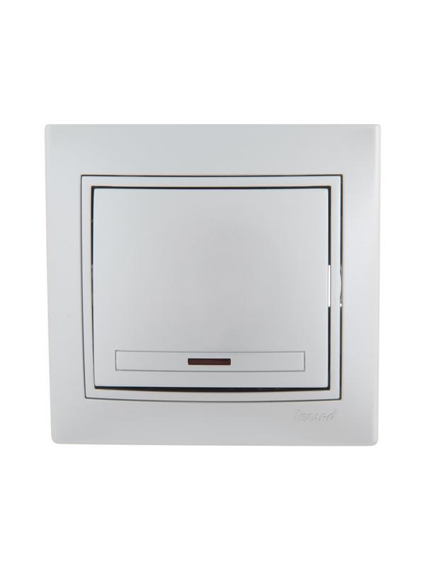 Выключатель 1-кл. СП Mira 10А IP20 с подсветкой со вставкой сер. метал. LEZARD 701-1010-111