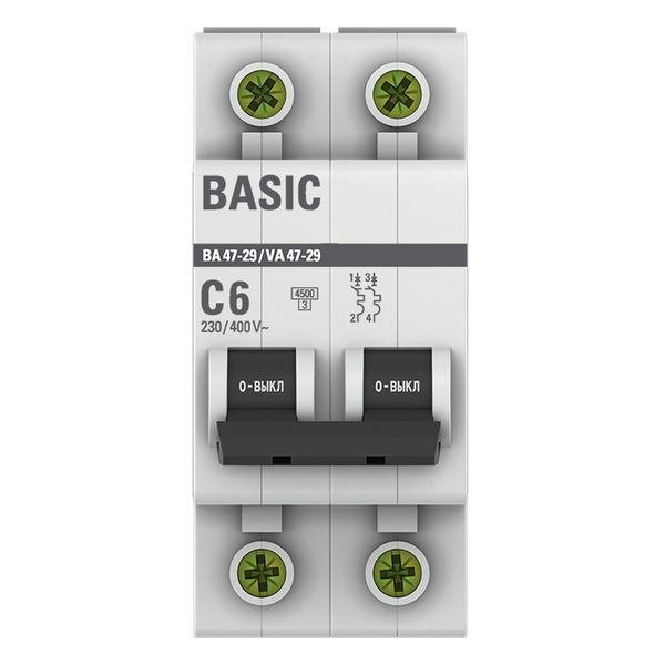 Выключатель автоматический модульный 2п C 6А 4.5кА ВА 47-29 Basic EKF mcb4729-2-06C