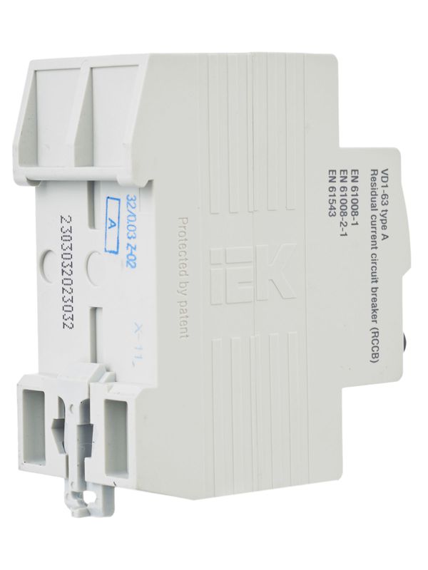 Дифференциальный выключатель ВД 1-63 тип А без встроенной защиты от сверхтоков реагирует не только на синусоидальные переменные дифференциальные токи, но и на пульсирующие постоянные дифференциальные токи. Источником пульсирующего тока являются, например, стиральные машины с регуляторами скорости, регулируемые источники света, телевизоры, видеомагнитофоны, персональные компьютеры и др. Дифференциальный выключатель ВД 1-63 тип А соответствует требованиям ГОСТ 50326 и ГОСТ 50807 как дифференциальный выключатель, "функционально не зависящий от источника питания". Дифференциальный выключатель ВД 1-63 тип А предназначен для защиты человека от поражения электрическим током при случайном непреднамеренном прикосновении к токоведущим частям электроустановок в сетях переменного тока напряжением 230/400 В и частотой 50 Гц. Дифференциальный выключатель ВД 1-63 тип А выпускается в 2-х и 4-х полюсном исполнении на номинальные токи 16А, 25А, 32А, 40А, 50А, 63А и номинальные отключающие дифференциальные токи 10мА, 30мА, 100мА.