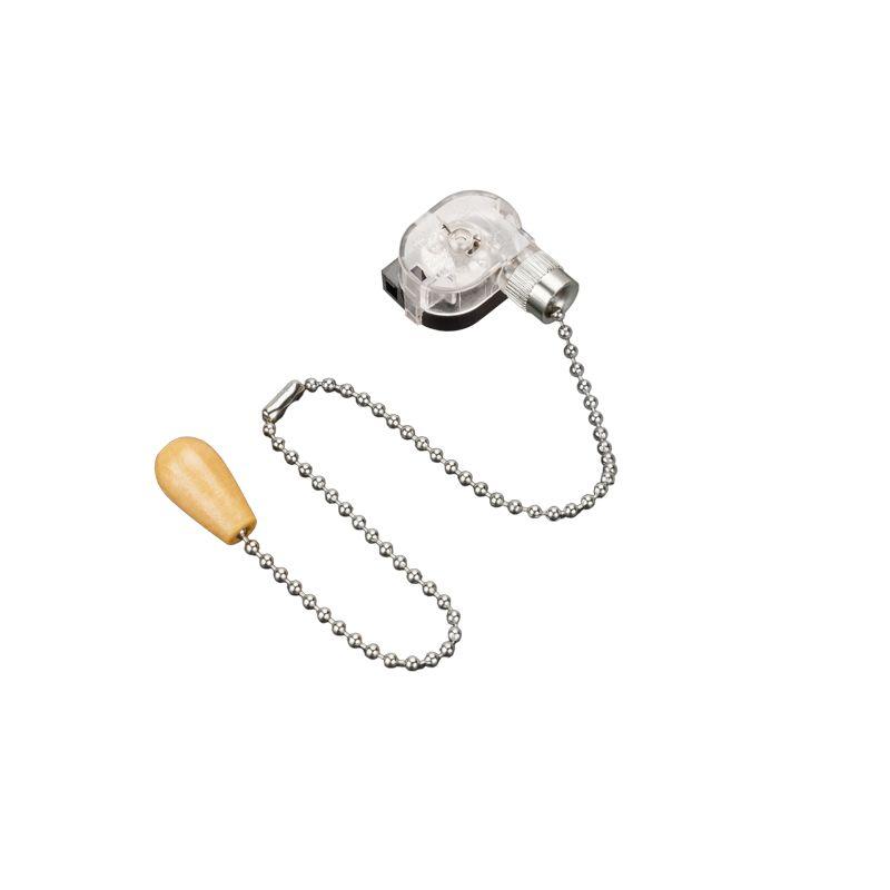 Выключатель для настенного светильника предназначен для замены вышедшего из строя выключателя на осветительном приборе. Используется для удобного управления освещением. Хромированная цепочка устойчива к коррозии и сохраняет эстетичный вид долгое время, а длина 27 см обеспечивает удобный доступ к светильникам, которые расположены высоко. Деревянный наконечник позволяет быстрее найти выключатель, что особенно упрощает его использование в темноте. Предназначен для использования только в жилых помещениях.